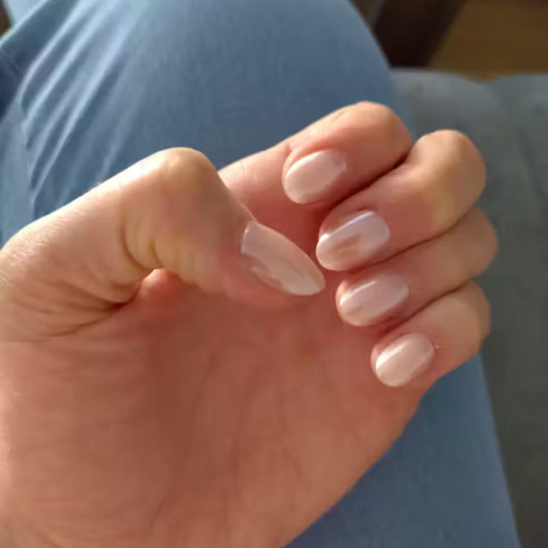• ,,Újonc vagyok a press-on műkörmök világában. Egy órája raktam fel őket, és kíváncsi vagyok, hogyan bírják majd a fürdést és a mosogatást! Szerintem szépek, és jól is érződnek."