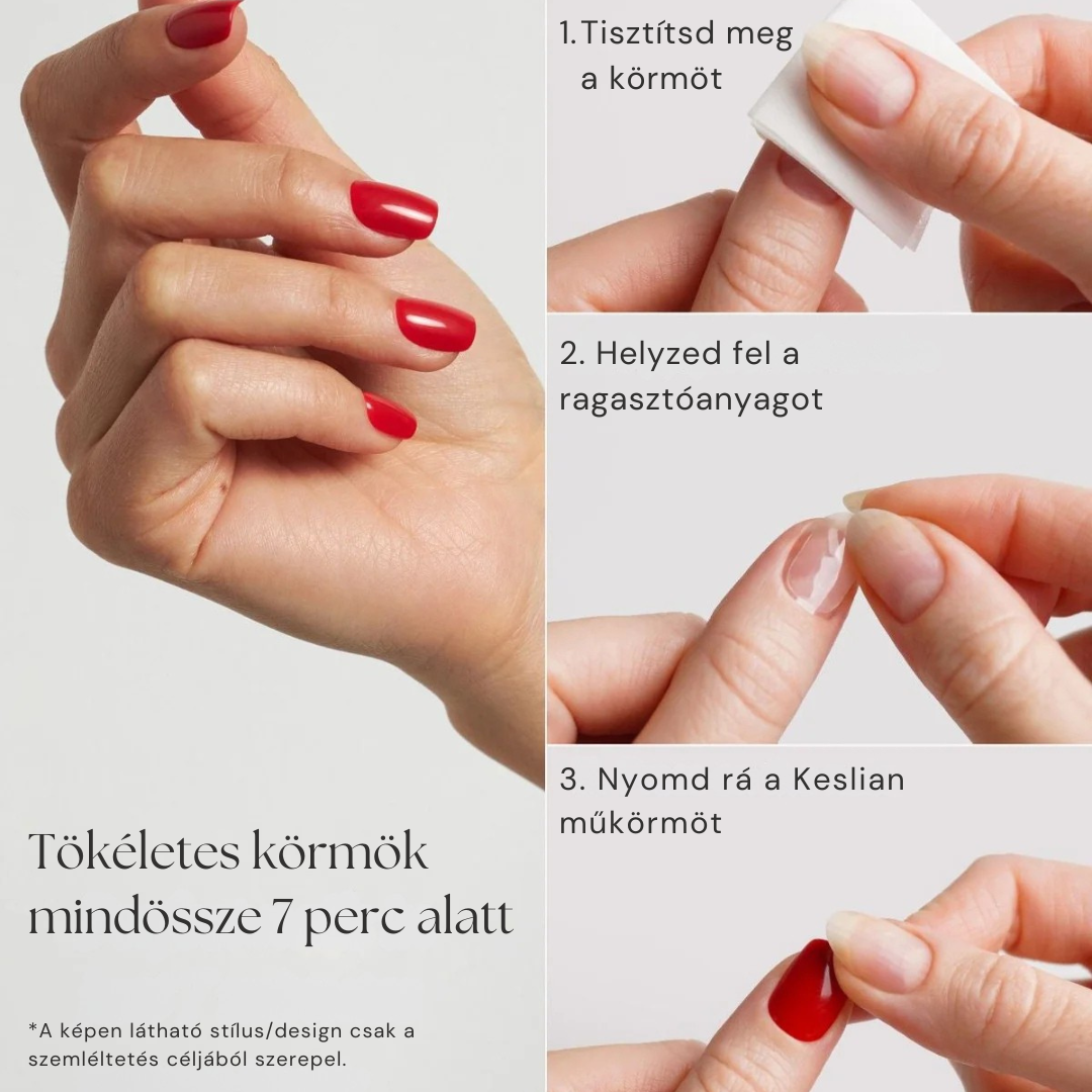 Ha a Keslian körömragasztójával rögzíted őket, akkor körülbelül 14-20 napig tartanak.